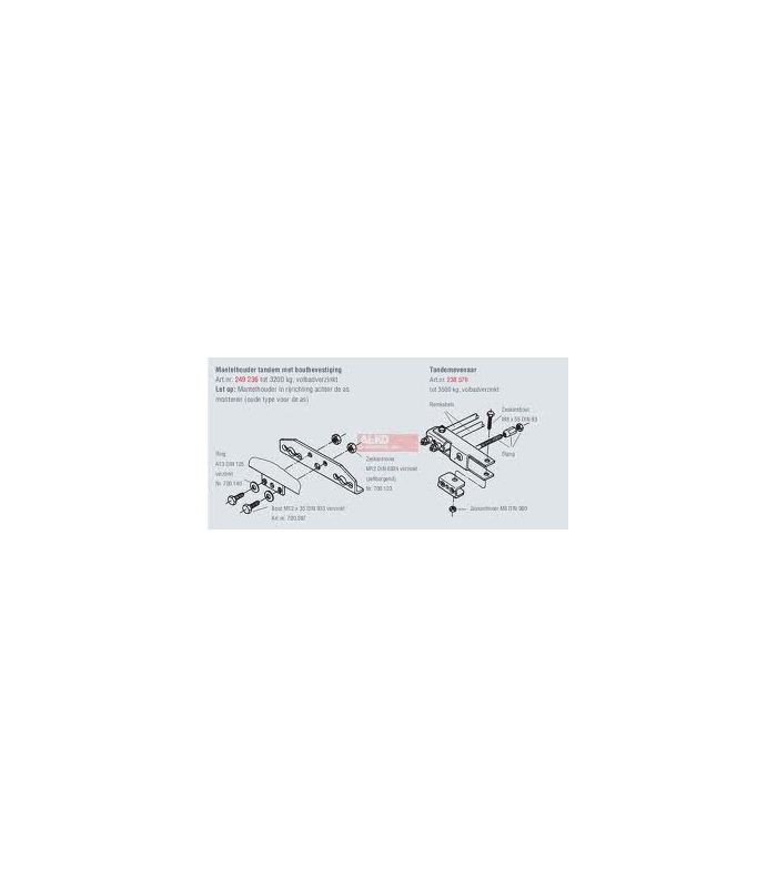 Voor directe montage op een aangelaste remkabelhouder op de as met 2 × M12x30 bouten. - Remevenaar tandem snelmontage – inhaak