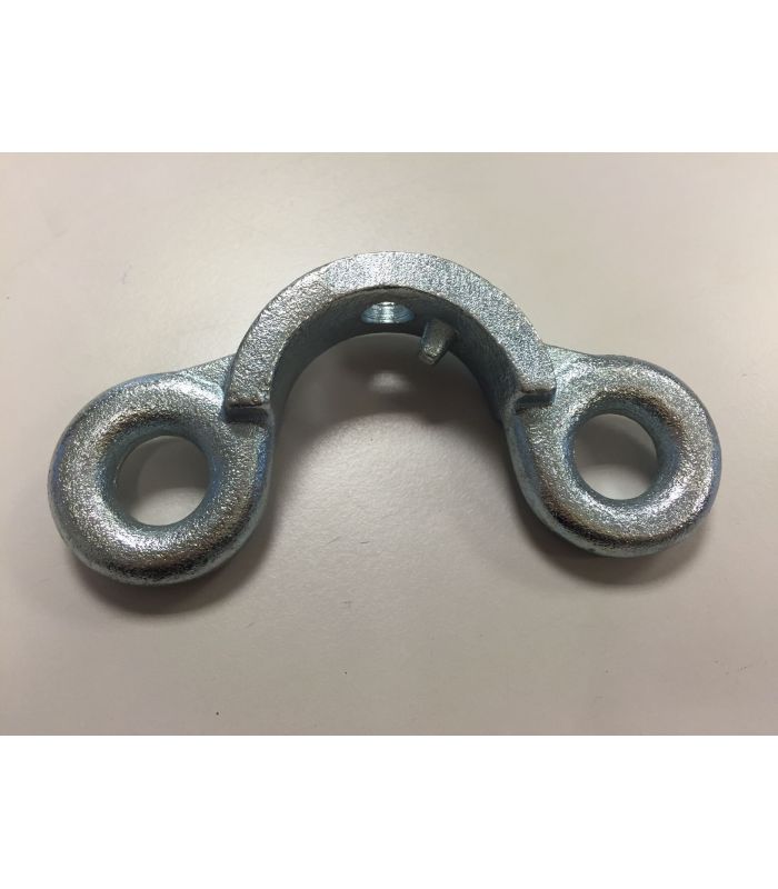Gietstuk tussenschothouder met 2 montagegaten, geschikt voor gedeelde borstbomen in paardentrailers en paardenwagens. Robuuste uitvoering voor een veilige en stabiele bevestiging.